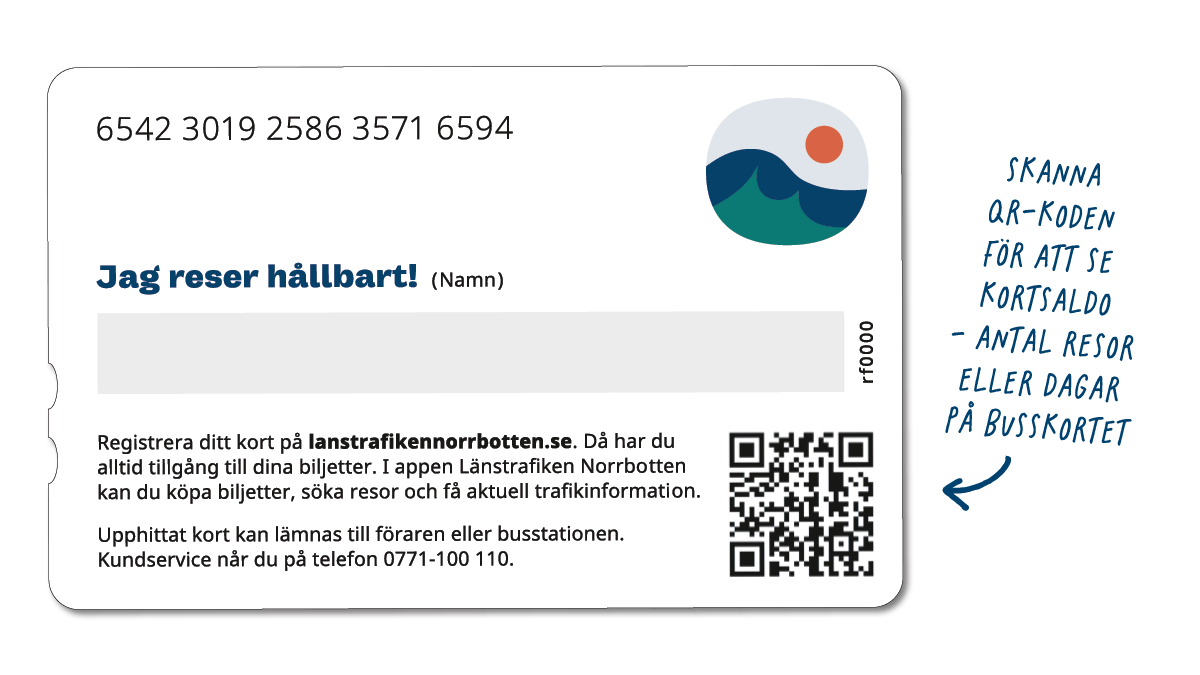 Nu lanserar vi en nyhet för dig som reser med busskort för att underlätta vid planeringen av din resa - innan påstigning och under resan. Tjänsten heter Kortsaldo. Skanna QR-koden på busskortet för att snabbt kunna se hur många resor eller dagar du har kvar på ditt kort.