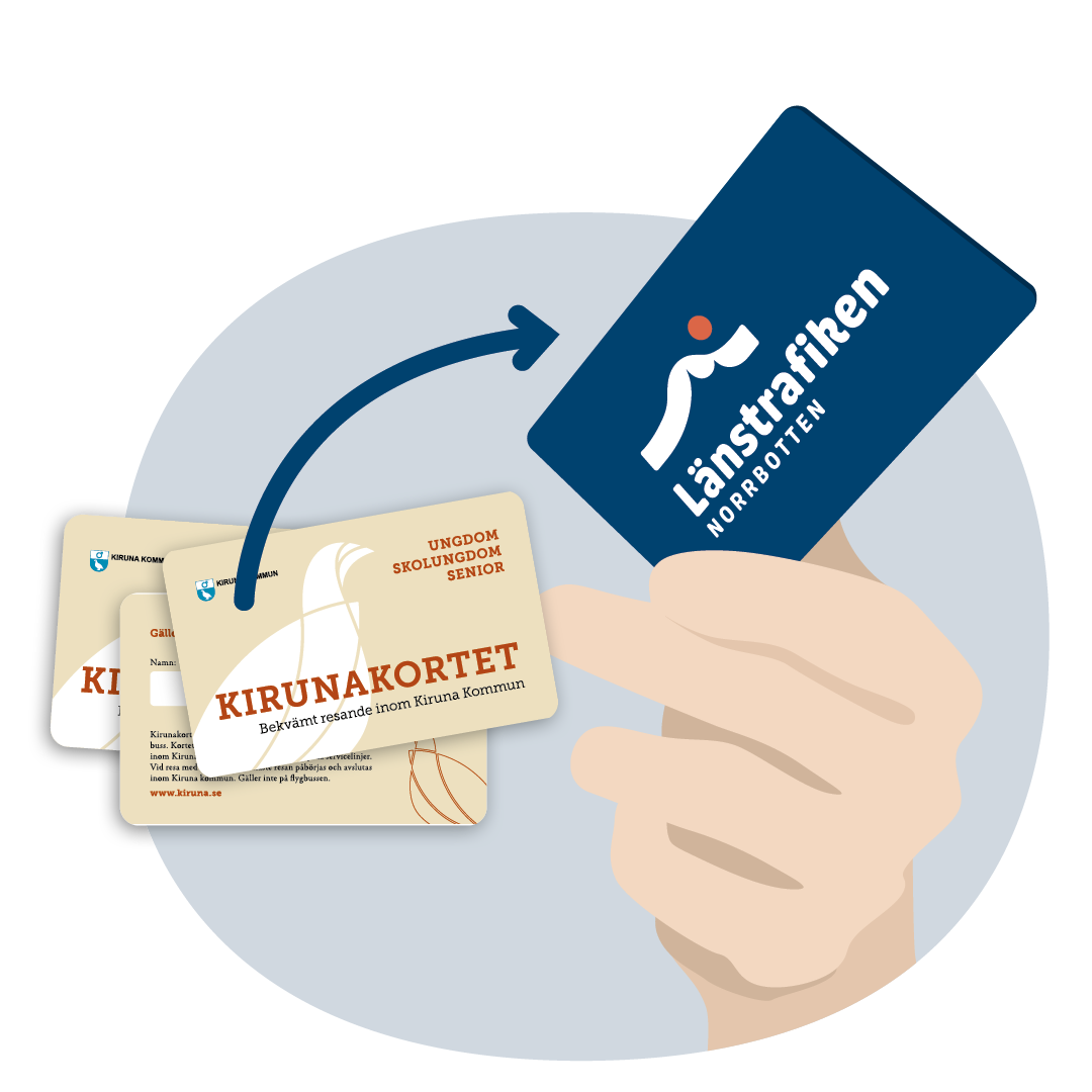 Då vi uppdaterar vårat biljett- och betalsystem behöver du som reser med Kirunakortet byta ut befintligt beigea kort till ett blått kort.